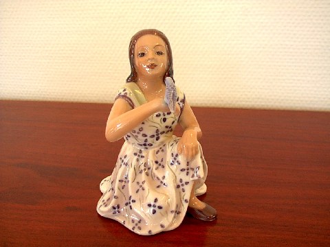 Dahl Jensen Figurine, Boy on stool with spinning Dek. No. 1205 1. Quality. Height 18 cm. Perfect condition.