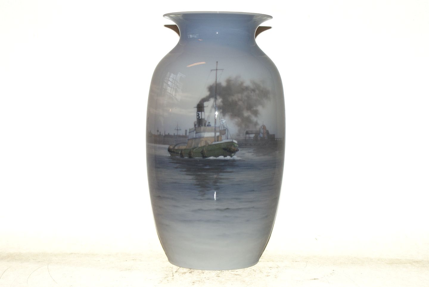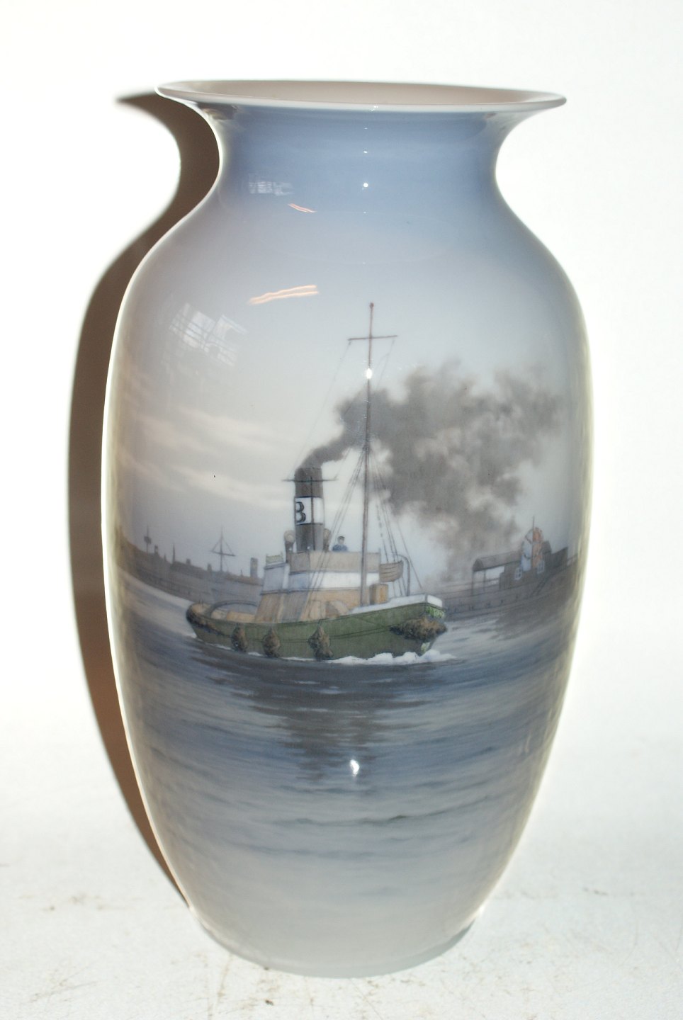 Large Royal Copenhagen Vase, Tugboat next to Copenhagen Naval Station