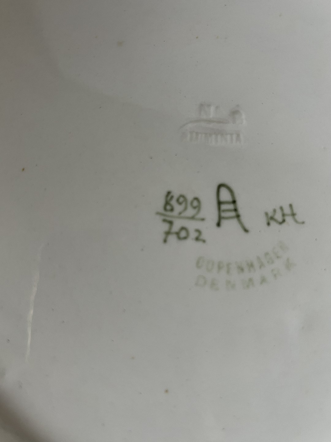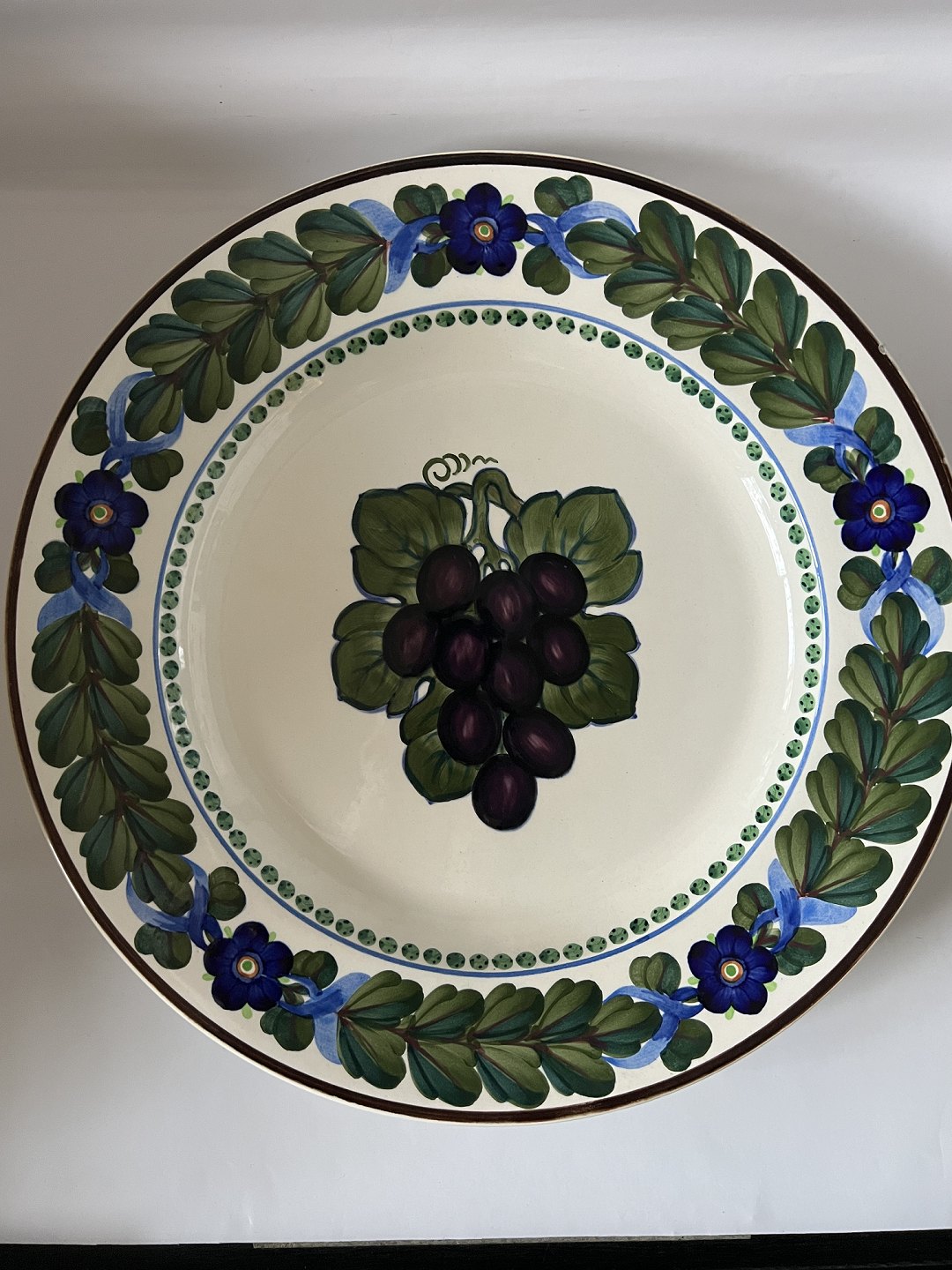 Platte #Aluminia med Drue klasse med lille skår Dekorationsnummer #899/#702 Diameter 34 cm. Pæn og velholdt stand og lille skår se billede