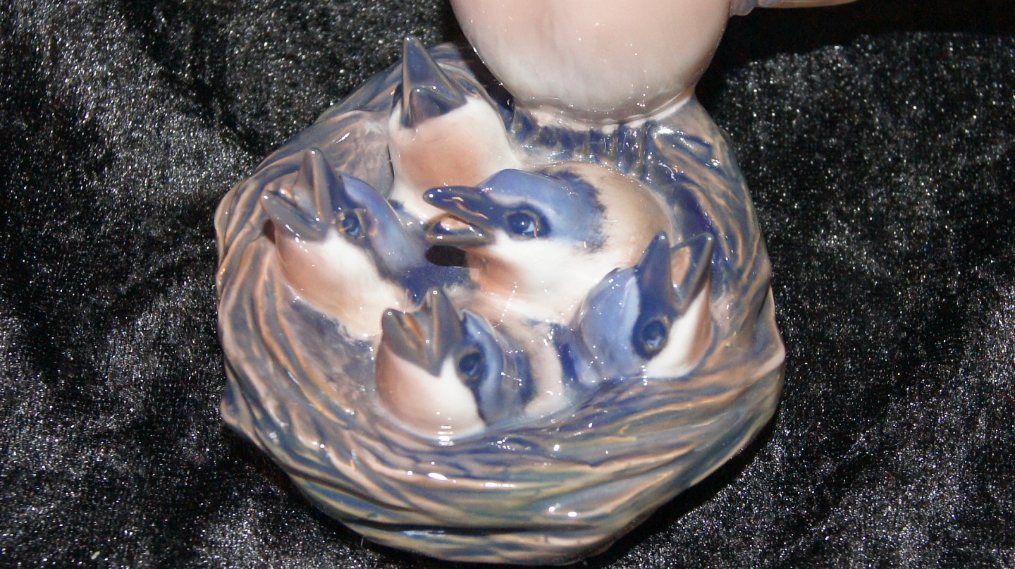 Dahl Jensen Figure of Bird mother with cubs Decoration number # 1349 1st grade (very nice in the colors) Height 12 cm. Length 16 cm. Nice and well maintained condition
