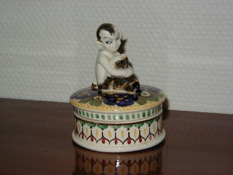 Aluminia Bonbonniere med Pan Figur