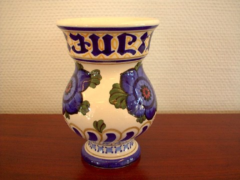 Aluminia Christmas from 1919. It has decoration number 1164/1045. Height 15 cm. Perfect condition. In the 1880s when production at the Royal Copenhagen factory was dropping to a dangerously low level they were taken over by Aluminia (founded 1863), successful makers of earthenware, and since that time the two ranges, earthenware and porcelain, have been running in tandem.
