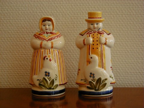 Aluminia Child Welfare Figurines. Forest boy (1946) and girl (1945). Height 14 cm. Perfect condition. In the 1880s when production at the Royal Copenhagen factory was dropping to a dangerously low level they were taken over by Aluminia (founded 1863), successful makers of earthenware, and since that time the two ranges, earthenware and porcelain, have been running in tandem.