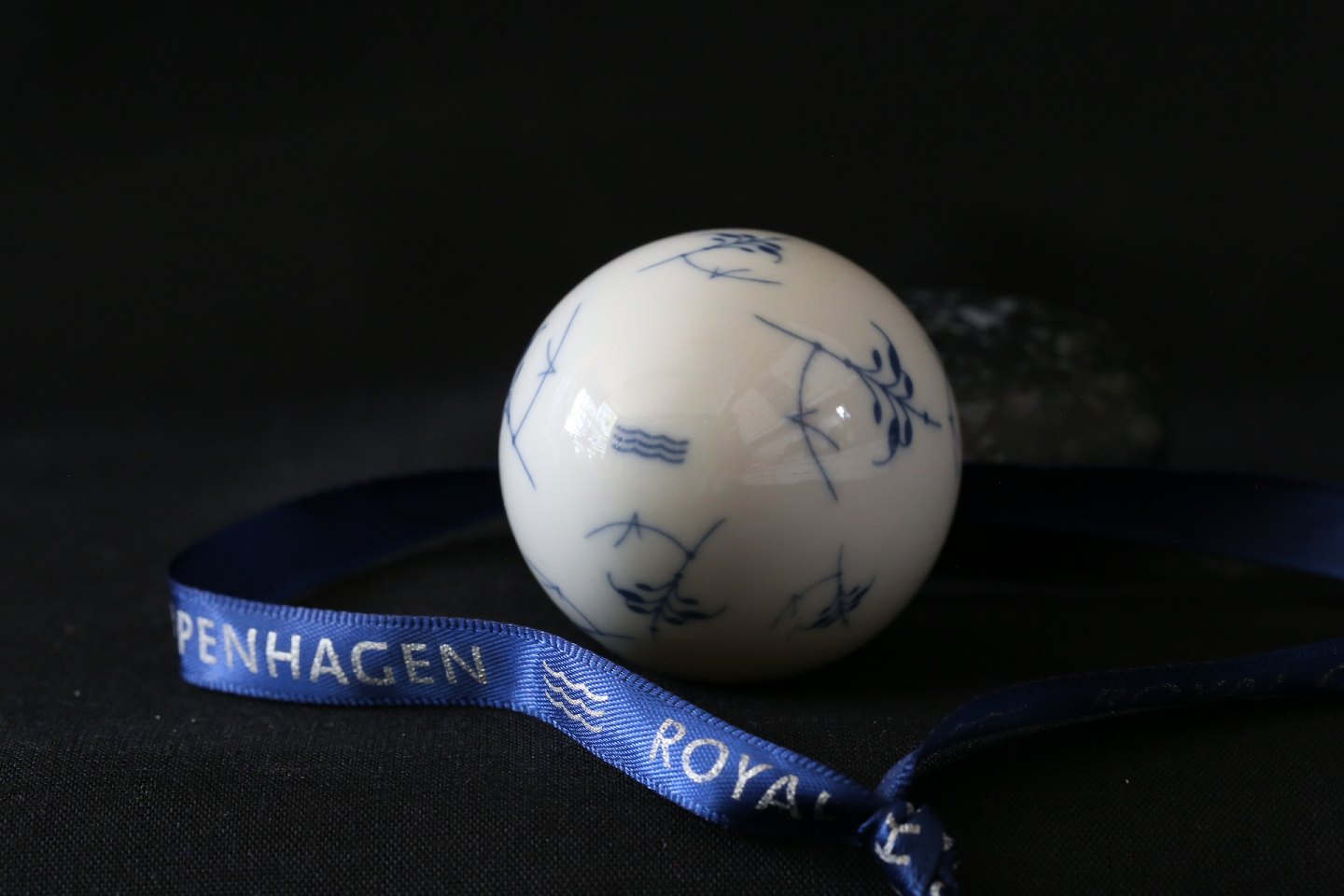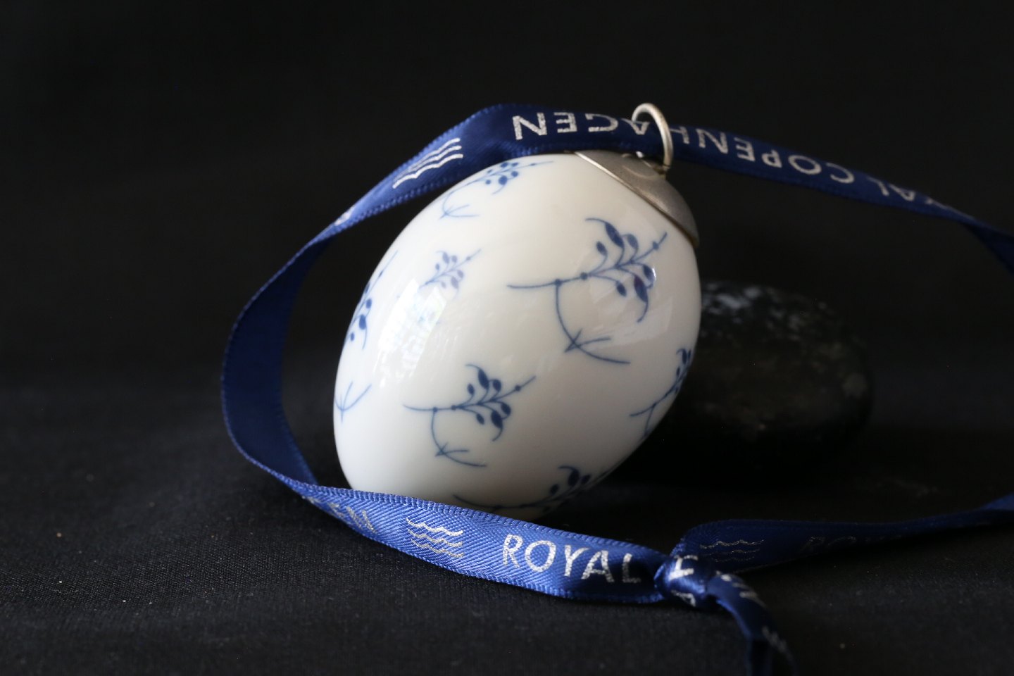 This beautiful seasonal egg from Royal Copenhagen, mussel painted, is part of a series with 2 other eggs. The egg is made of porcelain and painted in a classic style. It is 1st grade, and is very beautiful and stylish.