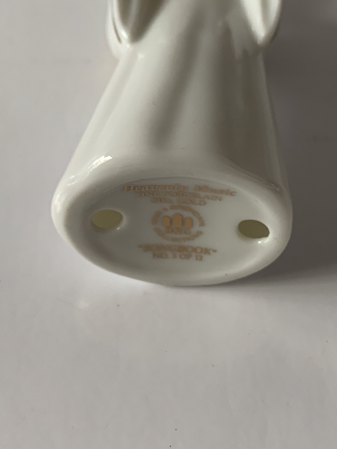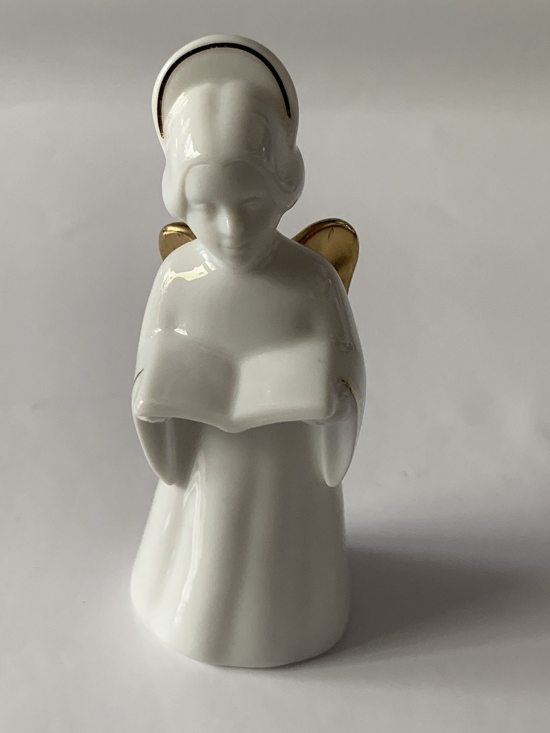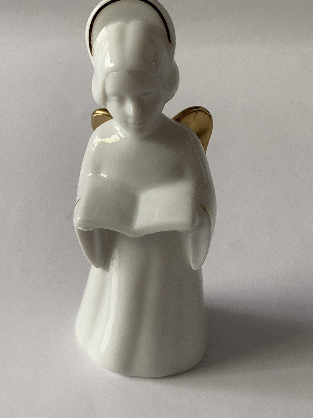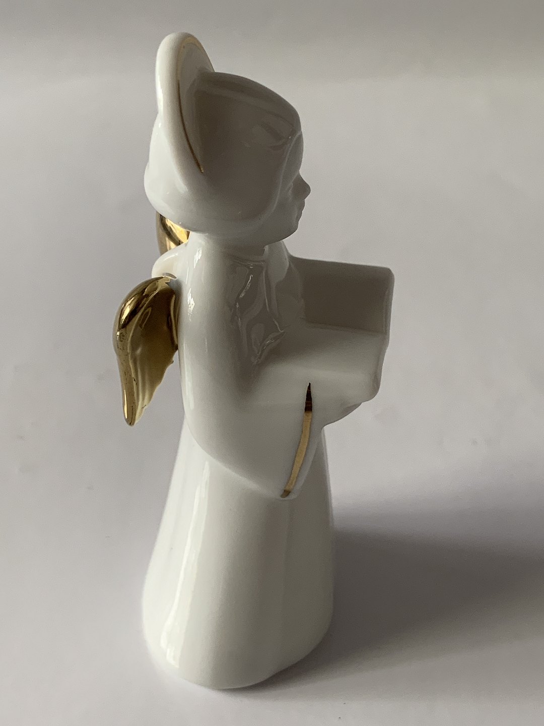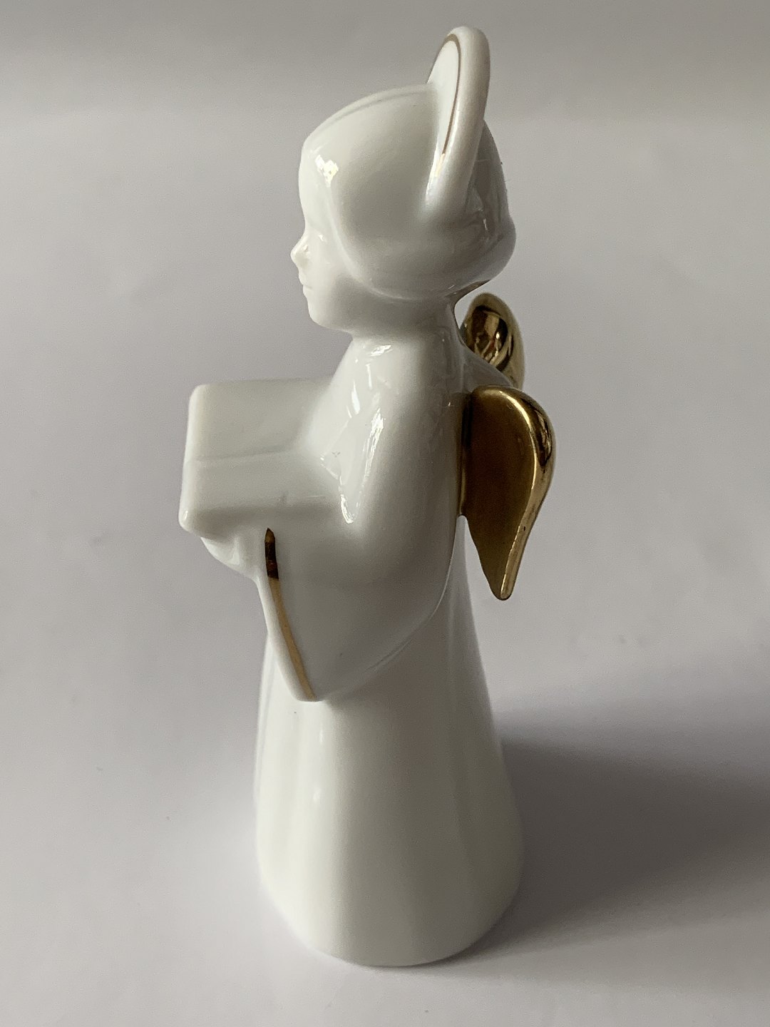 Bing & Grondahl. Heavenly Music. Songbook No. 3 of 12. White porcelain angel with gold trim and gold wings (24 carat). The series is called "Angel with Instruments" and consists of 12 pieces.