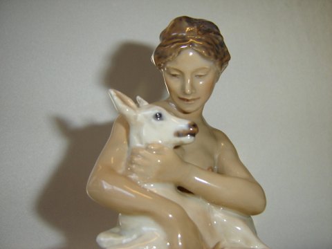 Rare Dahl Jensen Figurine, Girl with Kid. Decoration number 1276. Factory Second. Heigth 16.5 cm. Perfect condition.