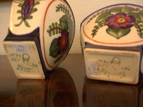 A pair Aluminia Faience Vases. They have decoration number 1039/661. Height 11 cm. Perfect condition. One is sold.
