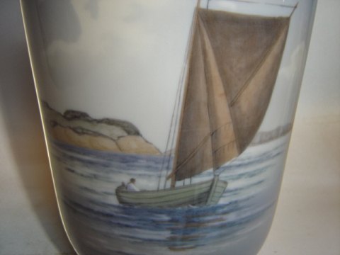 Large Royal Copenhagen Vase, With Gaff sail boat