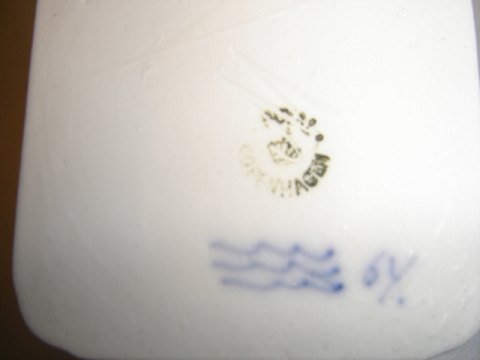 Royal Copenhagen Blue Fluted Plain, Writing set with on house before 1923 Decoration number 1/128 on tray Measures 22 by 15 cm. Lid to the house are with broken fragment