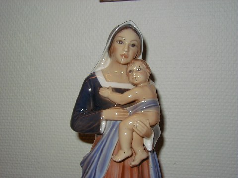 This is a very large and Rare Dahl Jensen Figure of Madonna holding a child. It has decoration number 1269, height 32 cm., and is factory first. It is signed personally by Dahl Jensen, meaning he has decorated this figurine himself. Perfect condition.