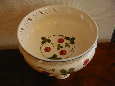 Large Aluminia Bowl on stand, "Rødkløver", decoration number 181/265, diameter 25 cm., height 22 cm. Has small hairline crack otherwise in excellent condition.