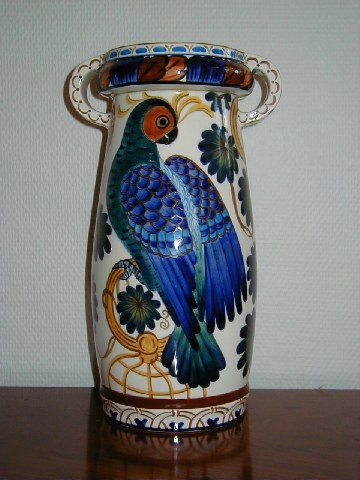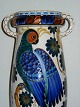 Large Aluminia Vase with Parrot decorations, number 735/531, height 32 cm.