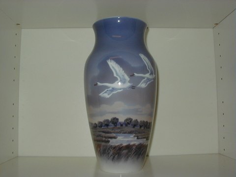 Royal Copenhagen Vase, Motiv: Lake with houses Decoration number 4644 Factory first Height 16.5 cm. Perfect condition.