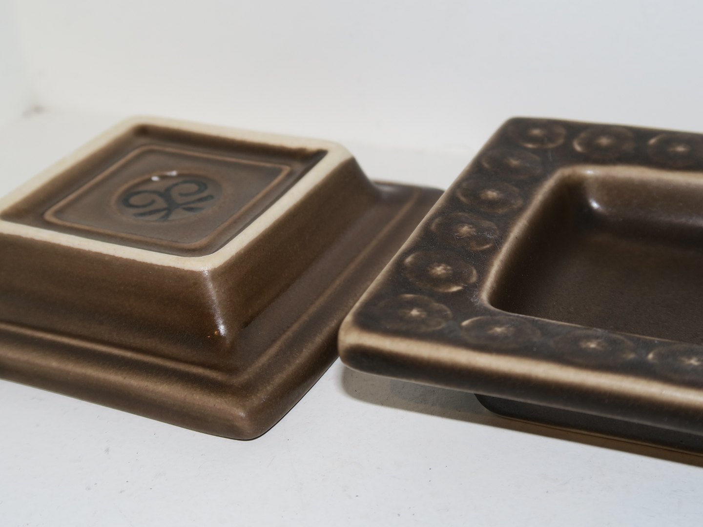 Kronjyden Umbra stoneware, small square dish. Designed by Jens Harald Quistgaard. Measures 9.0 by 8.8 cm. Perfect condition.