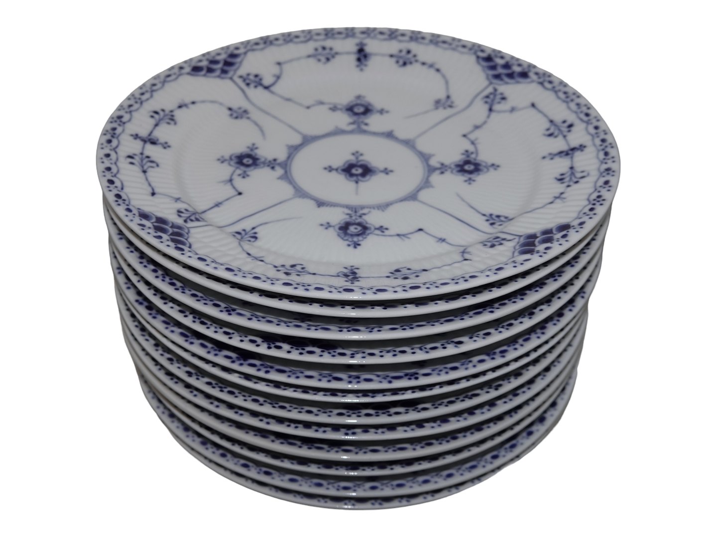 Royal Copenhagen Blue Fluted Halv Lace, extra flat dinner plate.