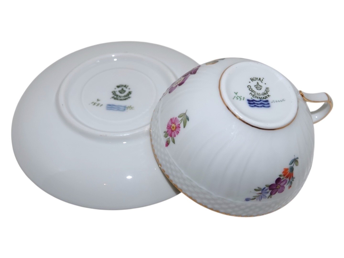 Royal Copenhagen Full Sachian Flower, teacup with matching saucer.