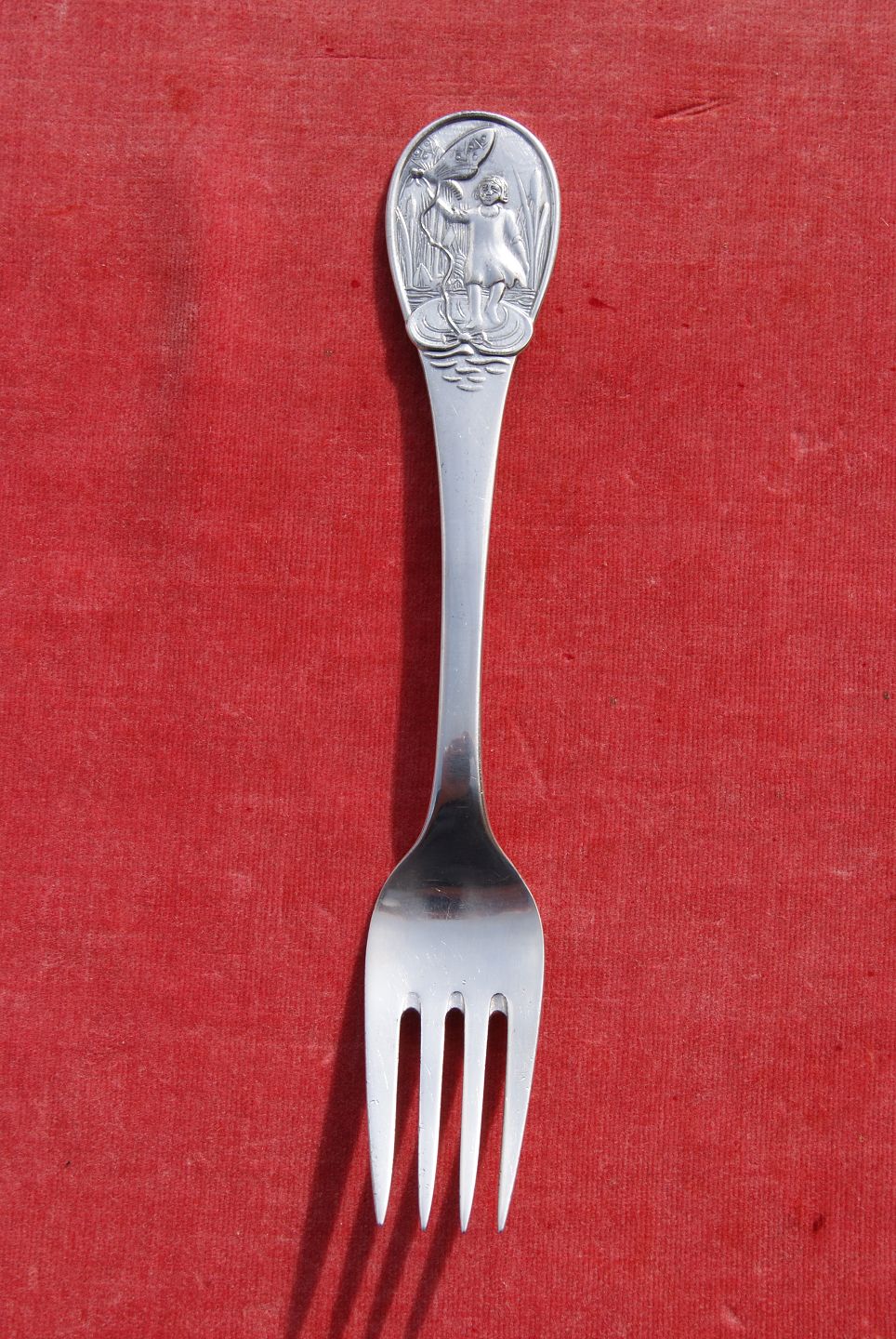 Fairy tales Danish child's cutlery kids cutlery of 830S solid silver with Little Tiny or Thumbelina by W. & S. Sorensen.
