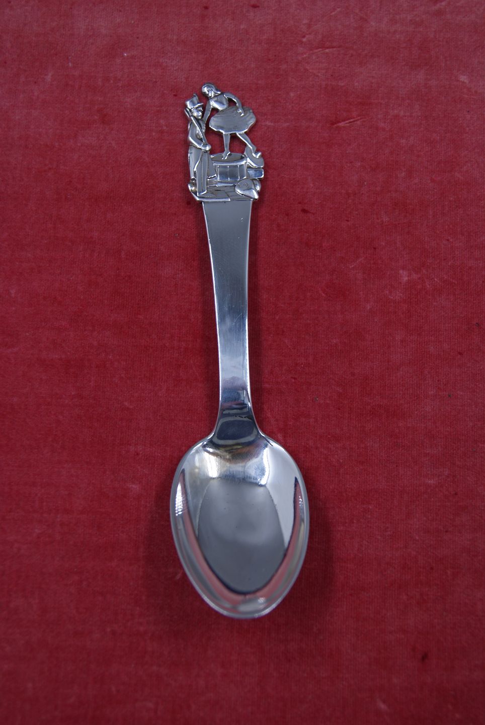 Fairy tales Danish child's cutlery kids cutlery of three Towers solid silver with The Brave Tin Soldier. H.C. Andersen's fairy tales kids cutlery.