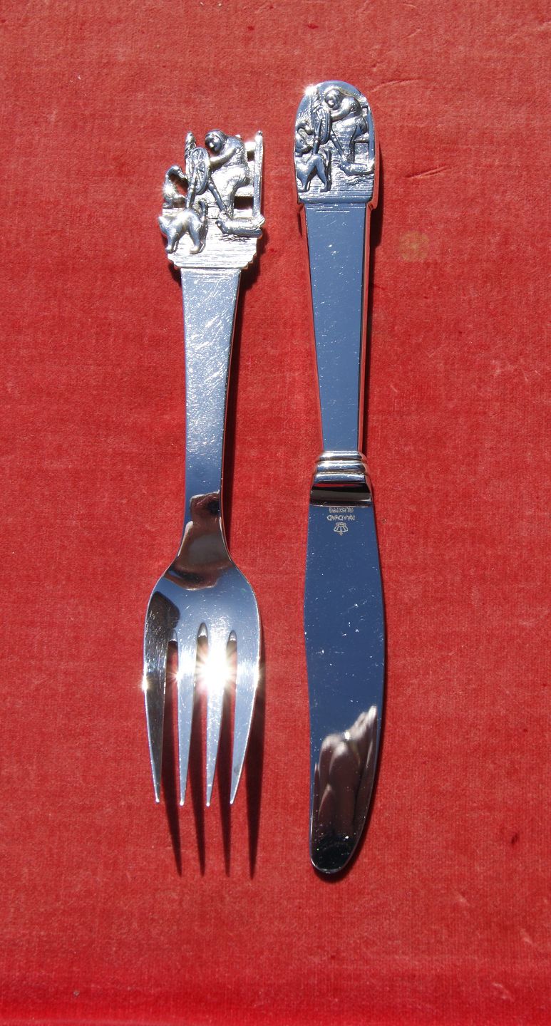 Fairy tales Danish child's cutlery kids cutlery of three Towers silver or 830S silver with The Ugly Duckling.
