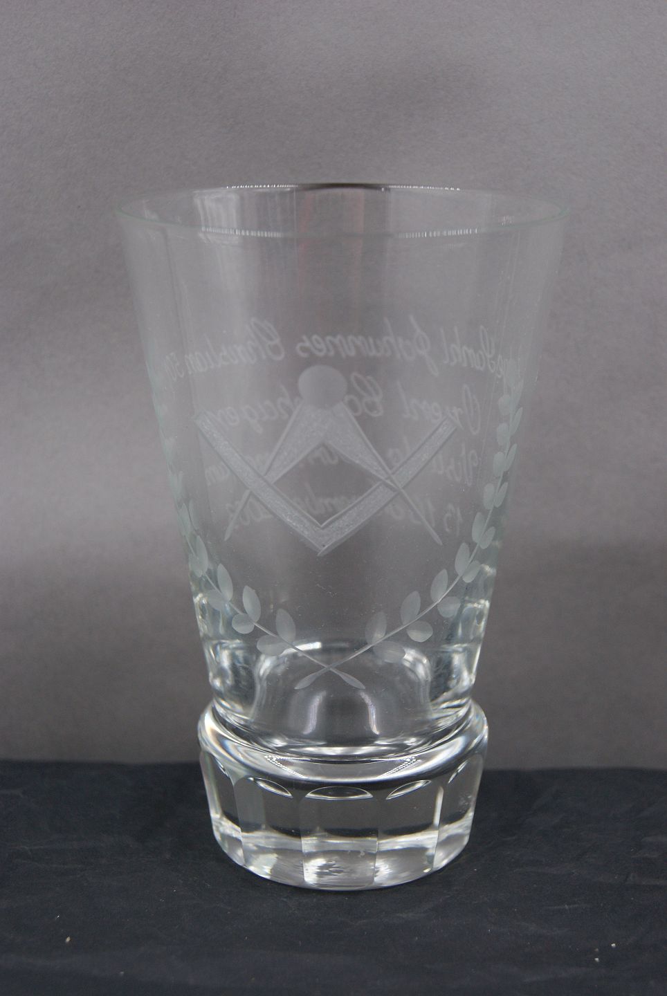 Danish Masonic glass Freemason beer glass engraved with freemason symbols on a edge-cutted foot.