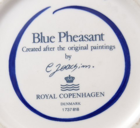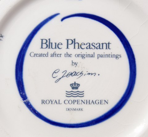 Blue Pheasant China faience porcelain dinnerware by Royal Copenhagen, Denmark.