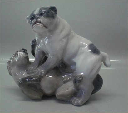 Royal Copenhagen dogs 2326 RC Playing English bulldogs 19 x 22 cm Designed by Knud Kyhn 1923 1. In mint and nice condition English Bulldog and ??