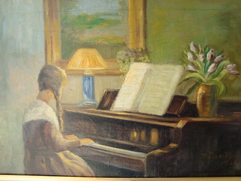 Text available in Danish: Maleri - "Pige ved klaver" 1921.