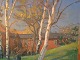 Stort smukt maleri med vej op mod hus - Carl J. Christensen 1940.