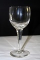 Text available in Danish: Aage, Rød/hvidvin, højde 15-15,5 cm. Holmegaard glasværk 1917-50. Facet slebet stilk og op til første del af kummen. Der er aldersrelateret brugsslid på glassene. Pris: 125 kr. stk. Lager: 3
