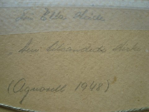 Bagpå: Fru Ella Heide "Den Tilsandede Kirke" "Aquarell 1948"
