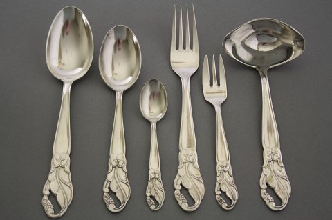 Text available in Danish: Rømø, sølvplet bestik. Mrk. DFA Dana.