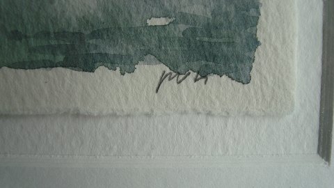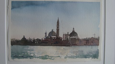 Text available in Danish: Akvarel af Peter V. Nielsen - Vue ind over Venedig.