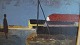 Maleri af Jørgen Budde Nielsen - Person og bygninger i landskab.