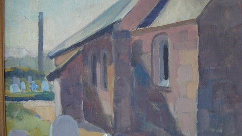 Parti fra Furreby Kirke med kirkegården.