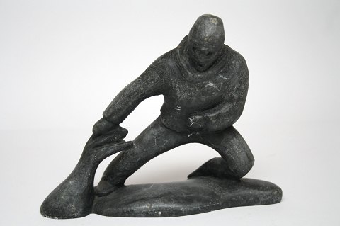 Grønlandsk fanger med hale, fedtsten. Signeret Gedian 82. Vægt 760 gram. Højde 17,5 cm. Længde 18 cm. Pris: 1.750 kr.