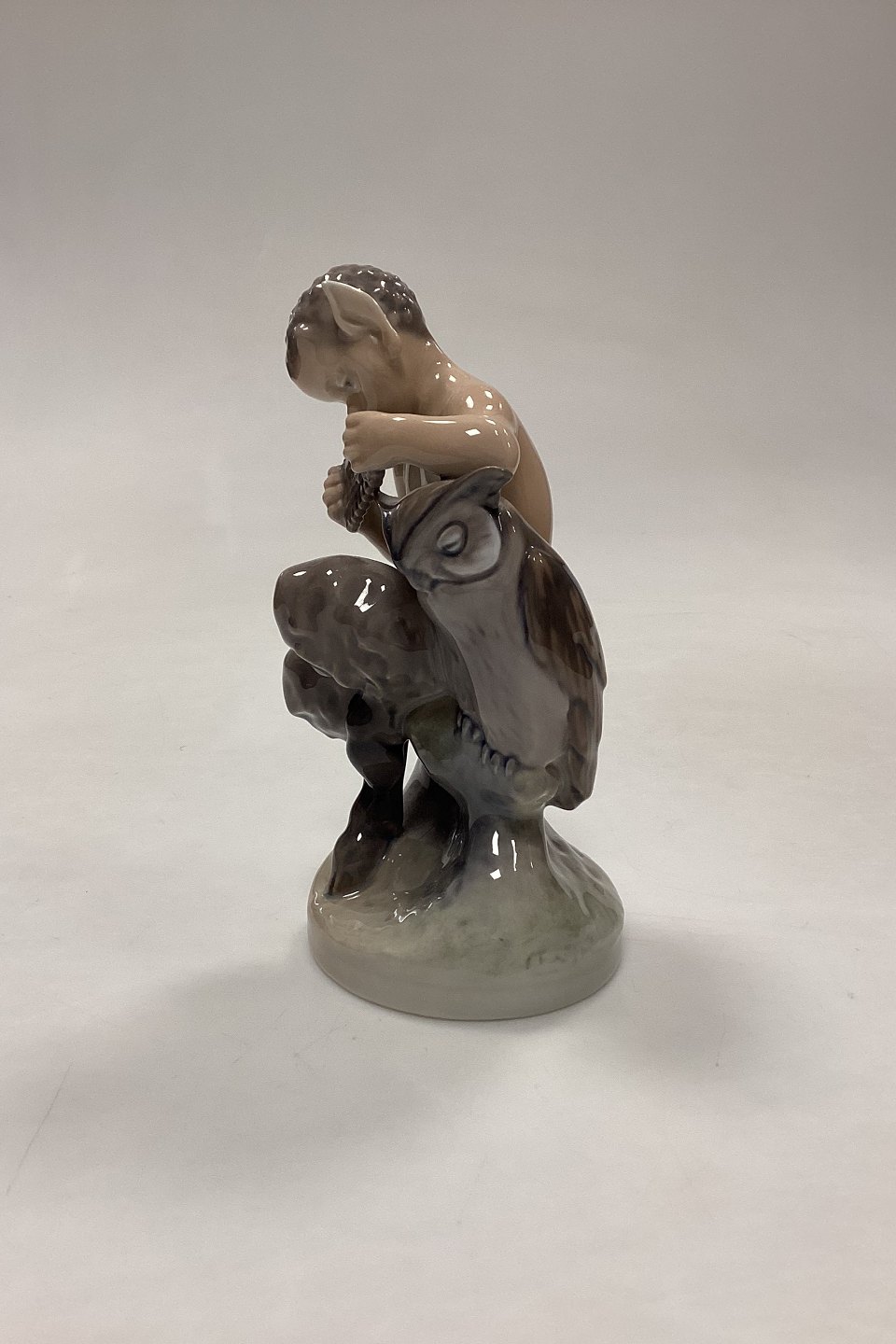 Royal Copenhagen Figurine Faun with Owl No. 2107. Designed by Chr. Thomsen in 1920.