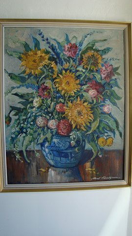 Maleri af Aksel Lundgreen - Blomster i krukke.
