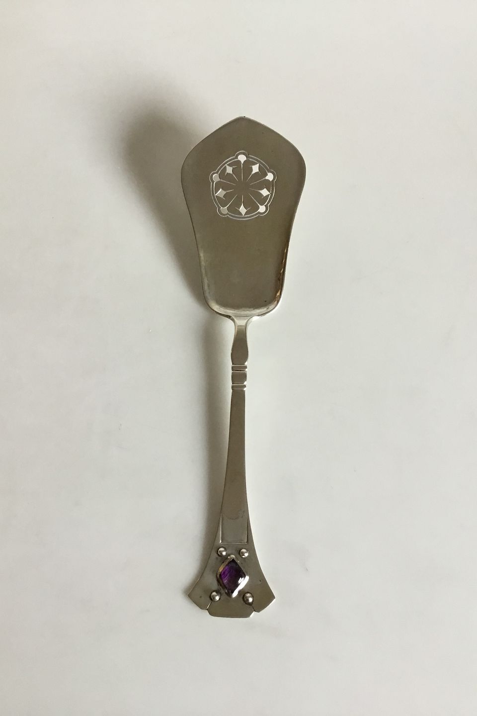 Mogens Ballin Silver Fish Serving spoon Pierced with stone