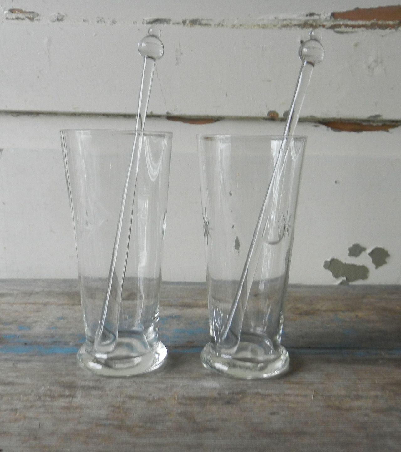 Par 1800tals toddy glas dekoreret med måne og stjerner.