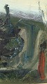 Bagpå - "Figur ved hus - skitse 64" samt signatur - P.B.S.