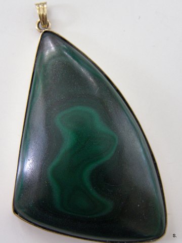 Text available in Danish: Flot Guldvedhæng 585 med Malakit.