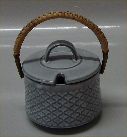 Cordial Grey 523 Jam Jar with lid - hole for spoon 10 x 9 cm (Nissen #1909) B&G Nissen Kronjyden Stoneware tableware. In nice and mint condition Bing & Groendahl, Designed for Kronjyden, Nissen by Jens Harald Quistgaard IHQ. Marked Kronjyden or Bing & Groendahl Copenhagen Stoneware