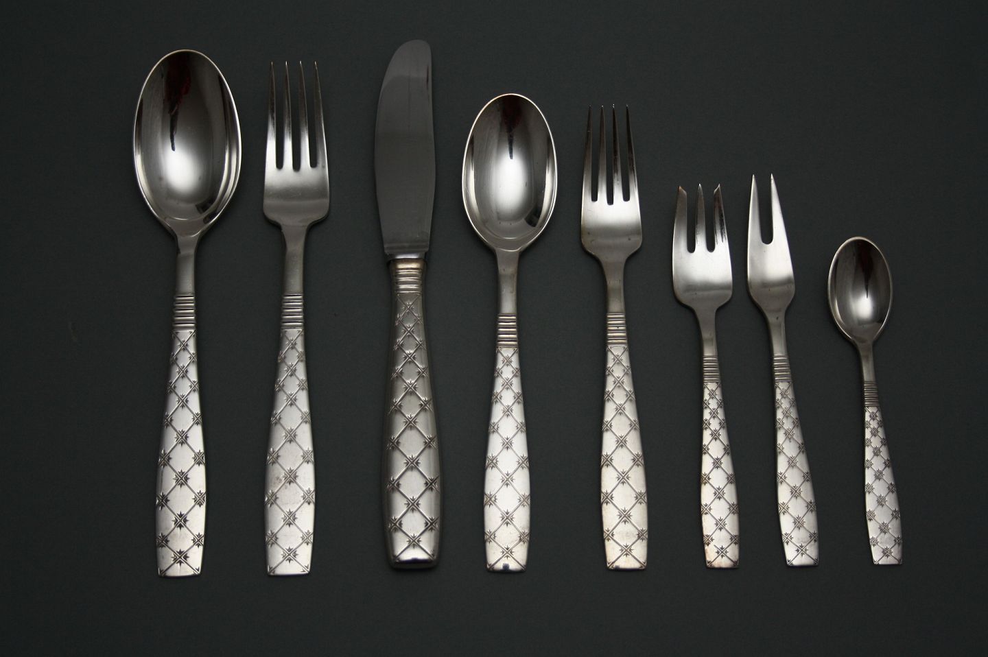 Stjerne er designet af Jens Quistgaard i 1948 og produceret af Finn Christensens sølvvarefabrik og Lundtofte. Flere af delene er med brugsspor i form af overfladeridser.