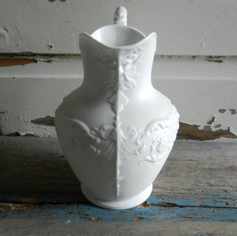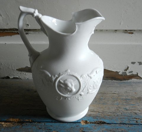 Smuk bisquit kande, indvendig glaseret, dekoreret med dyre motiver.