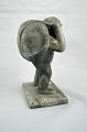 Grønlandsk fedtstensfigur af mand med oppakning fra 1970. Figuren er signeret '1970, A. H'. Højde: 19 cm. Bredde: 11,5 cm. Dybde 9 cm. Varenr.: 210068