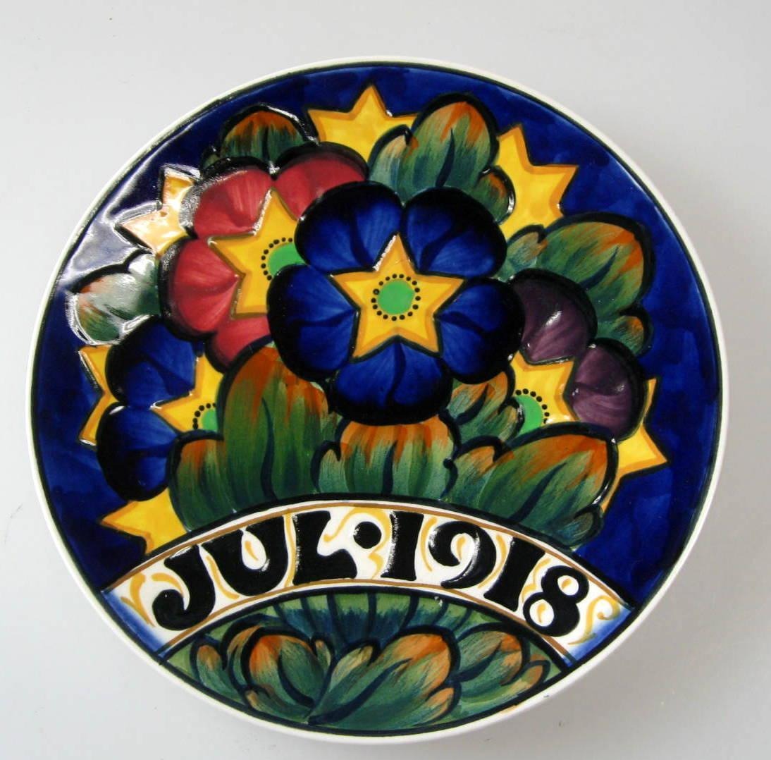 Aluminia juleplatte, 1918. Danmark. Polykrom dekoration med blomster. Stemplet.: Aluminia. Dia.: 16 cm.