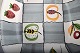 Jie, Gantofta, Sweden, retro. Burgundy red dish (18 x 6 cm.) An oval platter decorated with fruits (28.5 cm.) Dish with handle (28.5 x 6 cm.)