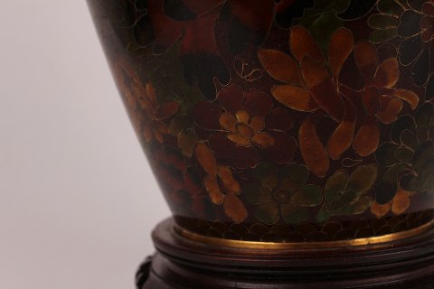 Old Vase with cloisonné decoration on stand made of wood (with defects)