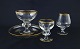 Text available in Danish: Gisselfeld glas med glat kumme, presset stilk og guldkant på rand og fod. Der er også is asietter til Gisselfeld serien