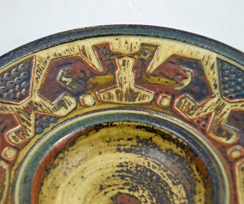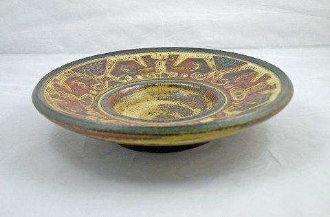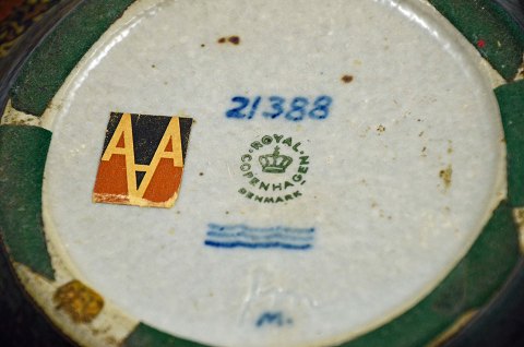 Text available in Danish: Skål i stentøj (nr. 21388) med design af Jørgen Mogensen for Royal Copenhagen. Skålen er i meget pæn stand. Højde: 6 cm. Ø: 26 cm.